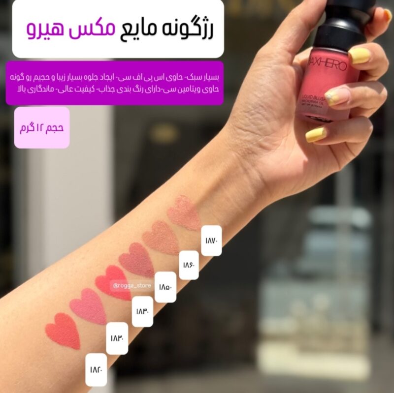 رژ گونه مایع مات مکس هیرو حاوی روغن ماکادمیا